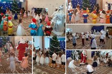с 23 по 26 декабря прошло 8 ярких новогодних представлений. Красиво украшенный зал, нарядная елка, великолепные костюмы, подарки, Дед Мороз, Снегурочка и множество других сказочных персонажей ожидали детей на новогодних елках. 23 декабрьдән 26 декабрьгә кадәр безнең бакчабызда яңа ел тамашалары узды. Матур итеп бизәлгән зал, матур чыршы, искиткеч костюмнар, бүләкләр, Кыш Бабай, Кар Кызы һәм башка бик күп әкият персонажлары балаларны Яңа ел чыршыларында көтте.