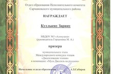 Поздравляем нашу воспитанницу подготовительной к школе группы Кутлыеву Зарину призёра муниципального этапа Международного конкурса чтецов «Джалиловские чтения» в номинации: «Муса Джалиль на русском». 03.12.2019