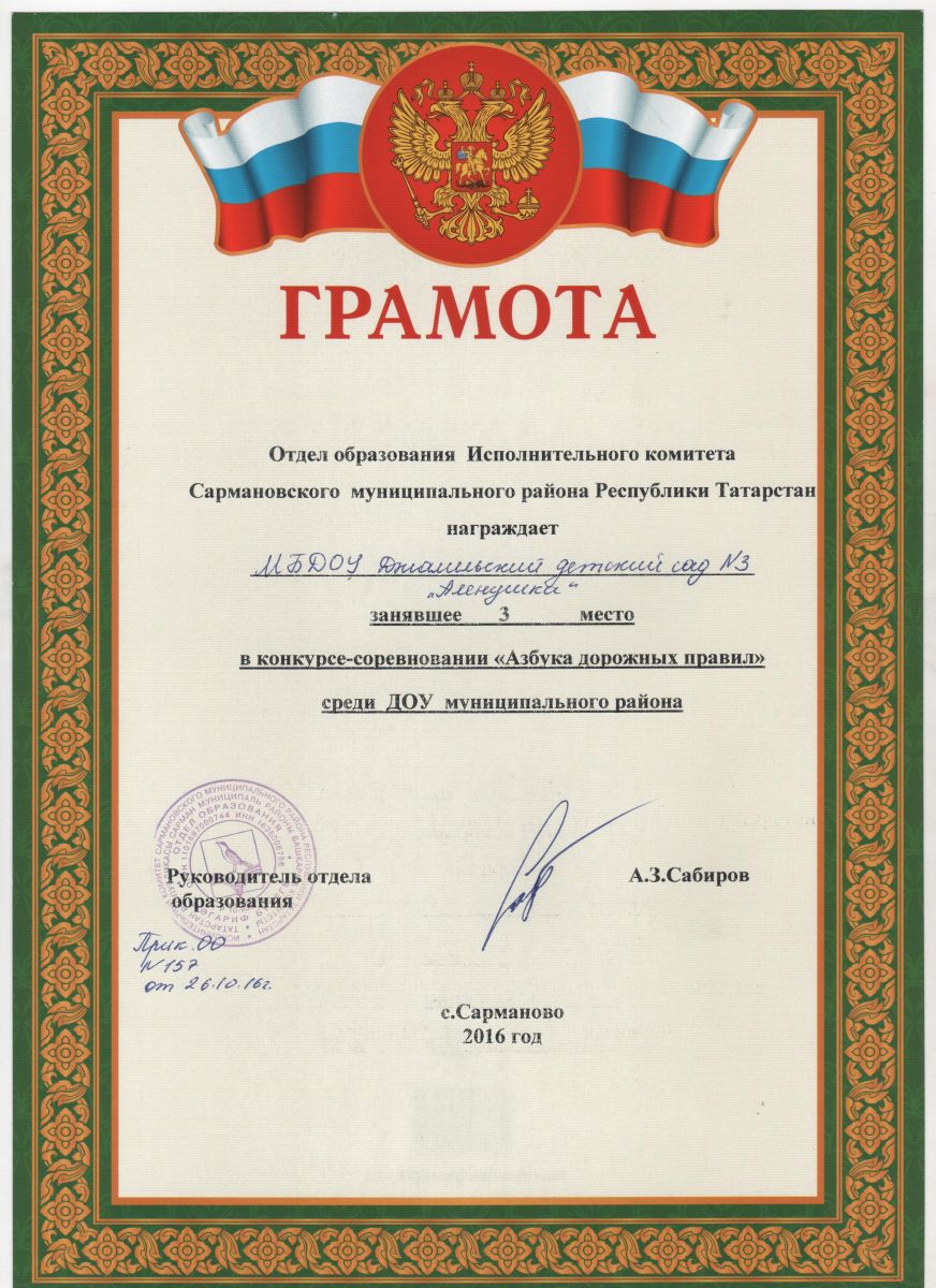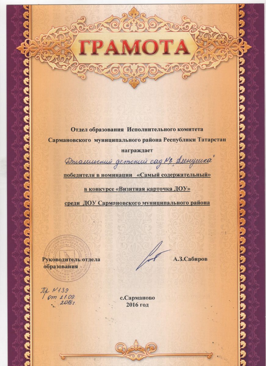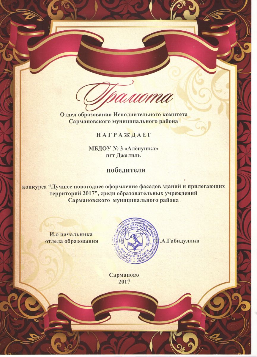 Грамота победителя Всероссийского смотра-конкурса "Образцовый детский сад" 2018г.