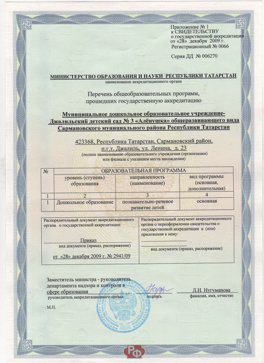 Свидетельство о государственной аккредитации