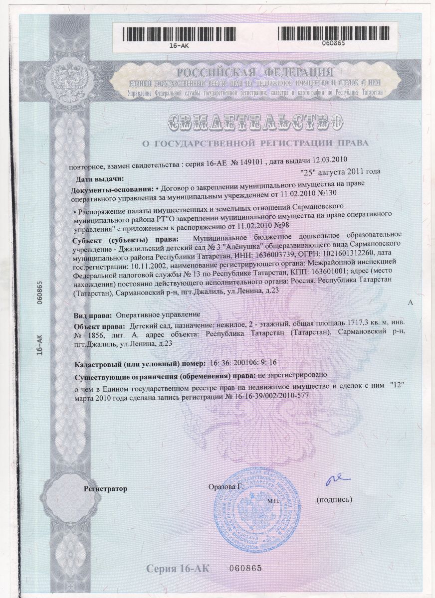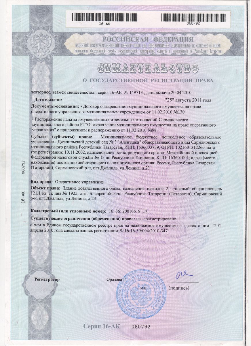| Адрес: | 423368, Республика Татарстан, Сармановский район, п.г.т.Джалиль, ул. Ленина, 23 |