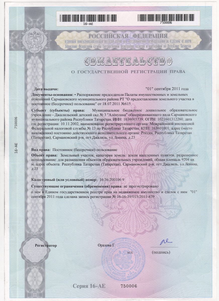 Муниципальное бюджетное дошкольное образовательное учреждение - Джалильский детский сад №3 "Аленушка" общеразвивающего вида Сармановского муниципального района РТ/Сарман муниципаль районы муниципаль бюджет мәктәпкәчә белем бирү учреждениесе - Җэлил бистәсенең гомуми үсеш төрендәге 3-нче "Алёнушка" балалар бакчасы