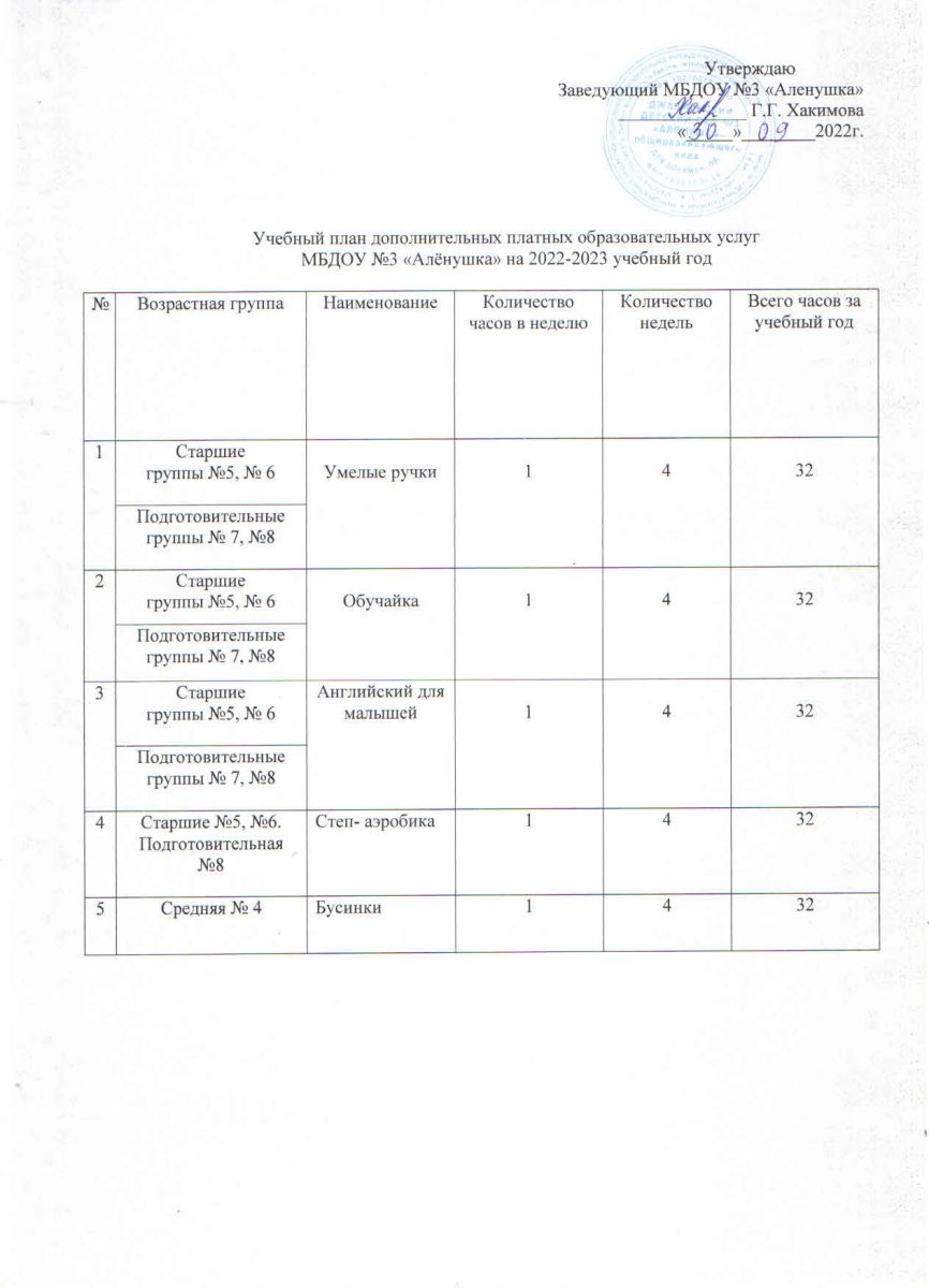 График предоставления дополнительных платных услуг МБДОУ №3 "Алёнушка" на 2023-2024 учебный год