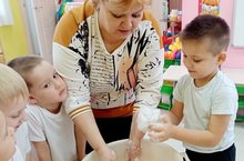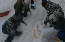 Подготовительная к школе группа после обильного снегопада вышла на уборку снега на своём участке. С утра дети пришли в детский сад с лопатками и с нетерпением ждали, когда пойдут на прогулку. Вооружившись лопатами, ребята отправились на участок. Сколько было удивления, когда на участке они не обнаружили дорожки, ведущей к веранде. После того, как очистили участок от снега, рбета решили отдохнуть и поиграть в снежки, было очень весело. -