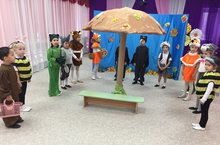 Так сегодня в ДОУ воспитанниками старшей группы (воспитатель Пирогова Н.Л.) была поставлена драматизация экологической сказки «Под грибом». Дети с помощью масок и костюмов превратились в настоящих актёров. Они смогли продемонстрировать не только знание сказки, но и связанную речь, свои артистические способности.