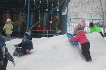 А в саду у нас гора, все катаются с утра.....