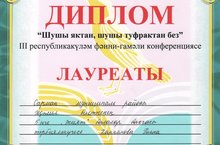 Сарман мунициаль районы Җәлил бистәсенең “Әкият”балалар бакчасы тәрбияләнүчесе Ханнанова Риана “Шушы яктан, шушы туфрактан без” III республикакүләм фәни – гамәли конференциясендә лауреат исеменә лаек булды.