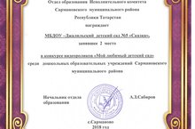 Безнең балалар бакчасы "Минем яраткан балалар бакчасы" дигән муниципаль видеоролик конкурсында катнаштылар һәм 2 урынга лаек булдылар.
