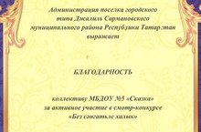 Муниципальное бюджетное дошкольное образовательное учреждение- Джалильский детский сад №5 " Сказка" комбинированного вида Сармановского муниципального района РТ/ Сарман муниципаль районы муниципаль бюджет мәктәпкәчә белем биру учреждениесе - катнаш төрдәге Җәлил шөһәр тибындагы поселокның 5 нче "Әкият" балалар бакчасы