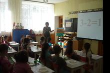 Сегодня ученики школы №1 показали развлечение по ПДД. Детям было очень интересно.