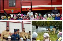 Дети старших групп №10,11 посетили Пожарную часть в п.г.т. Джалиль. Воспитанники ДОУ не только закрепили свои знания о пожаоной безопасности, но еще и узнали много интересного о профессии борцов с огнем -пожарных!