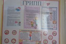 В холле детского сада размещен стенд, который информирует родителей и сотрудников о профилактике гриппа и ОРВИ
