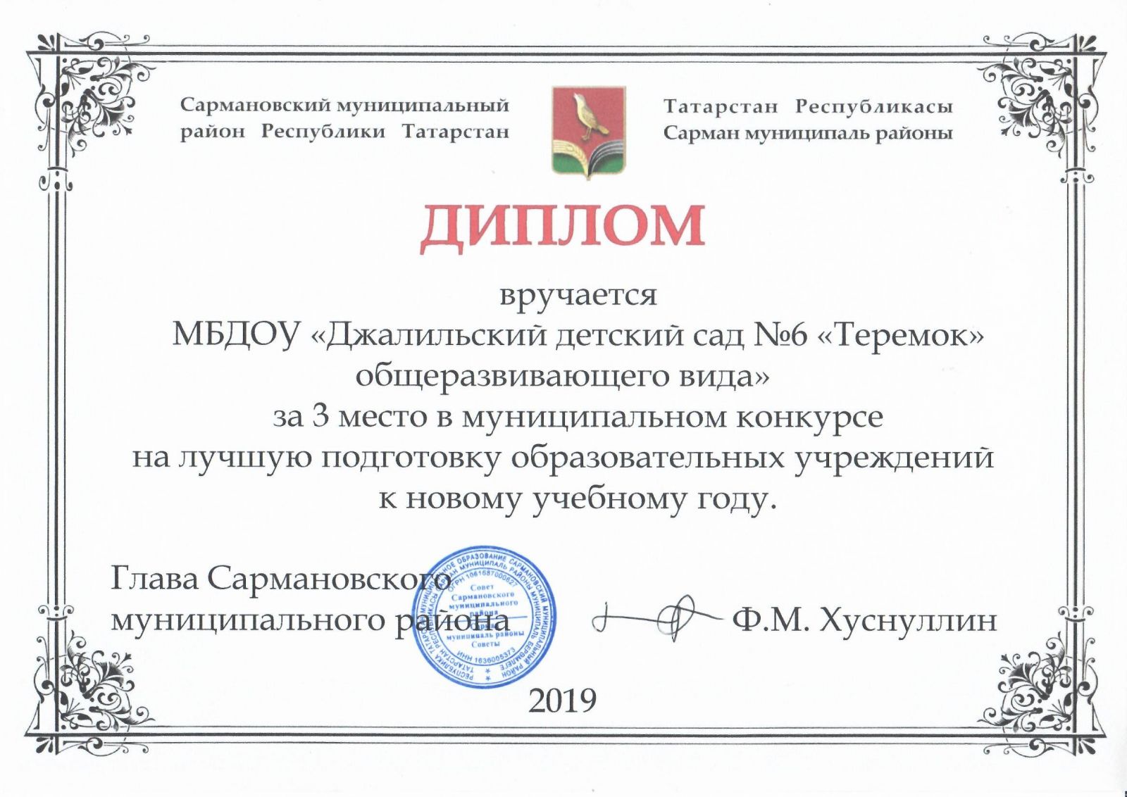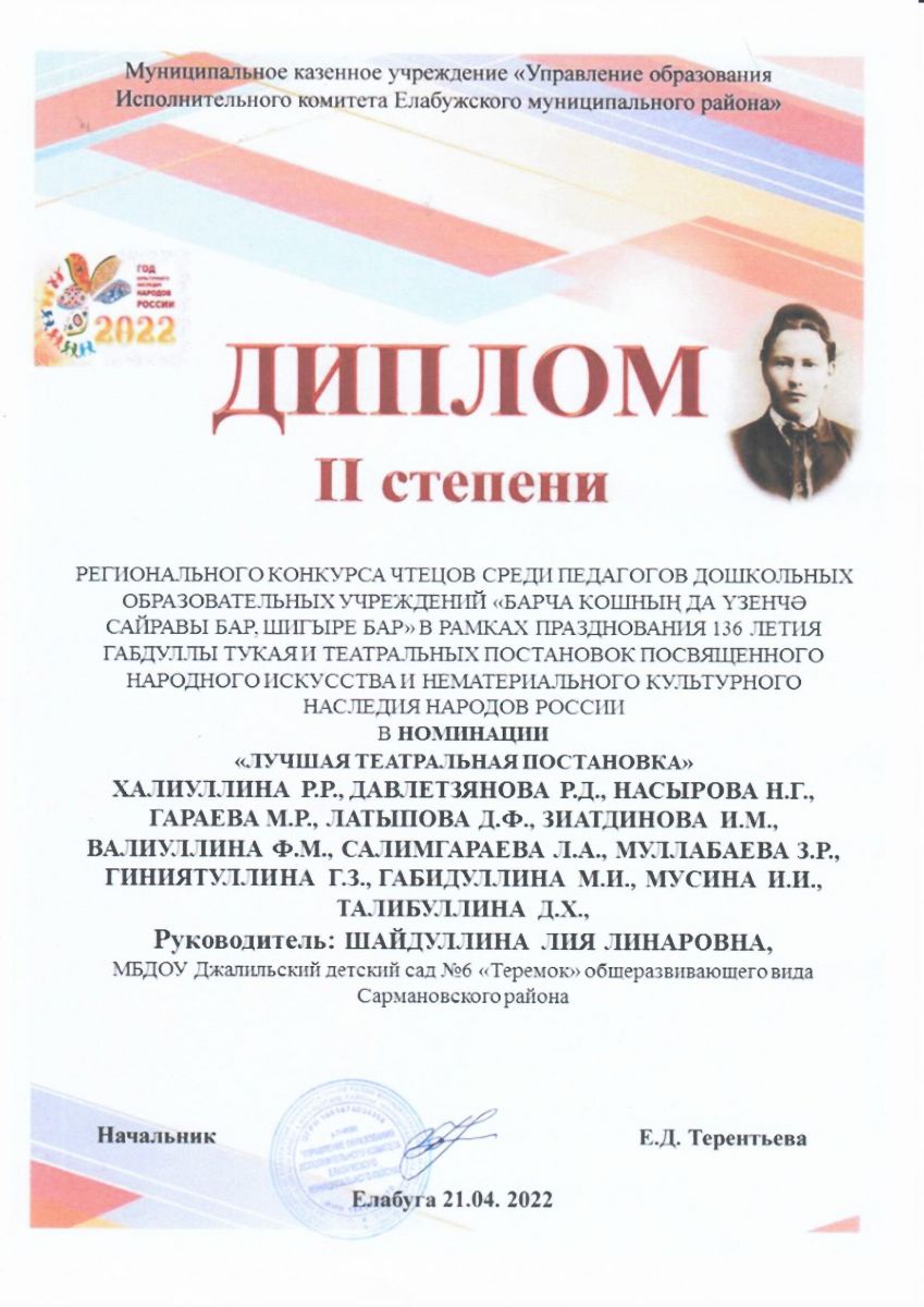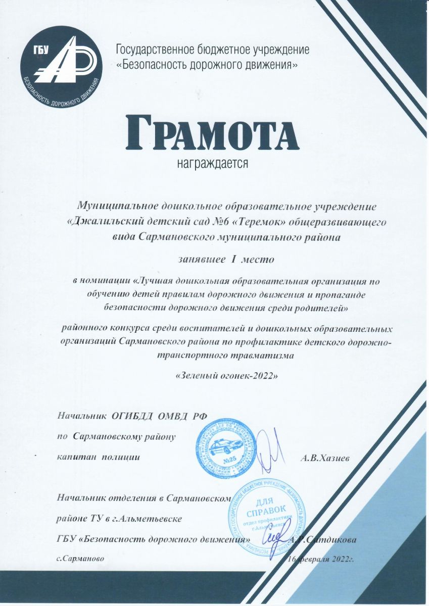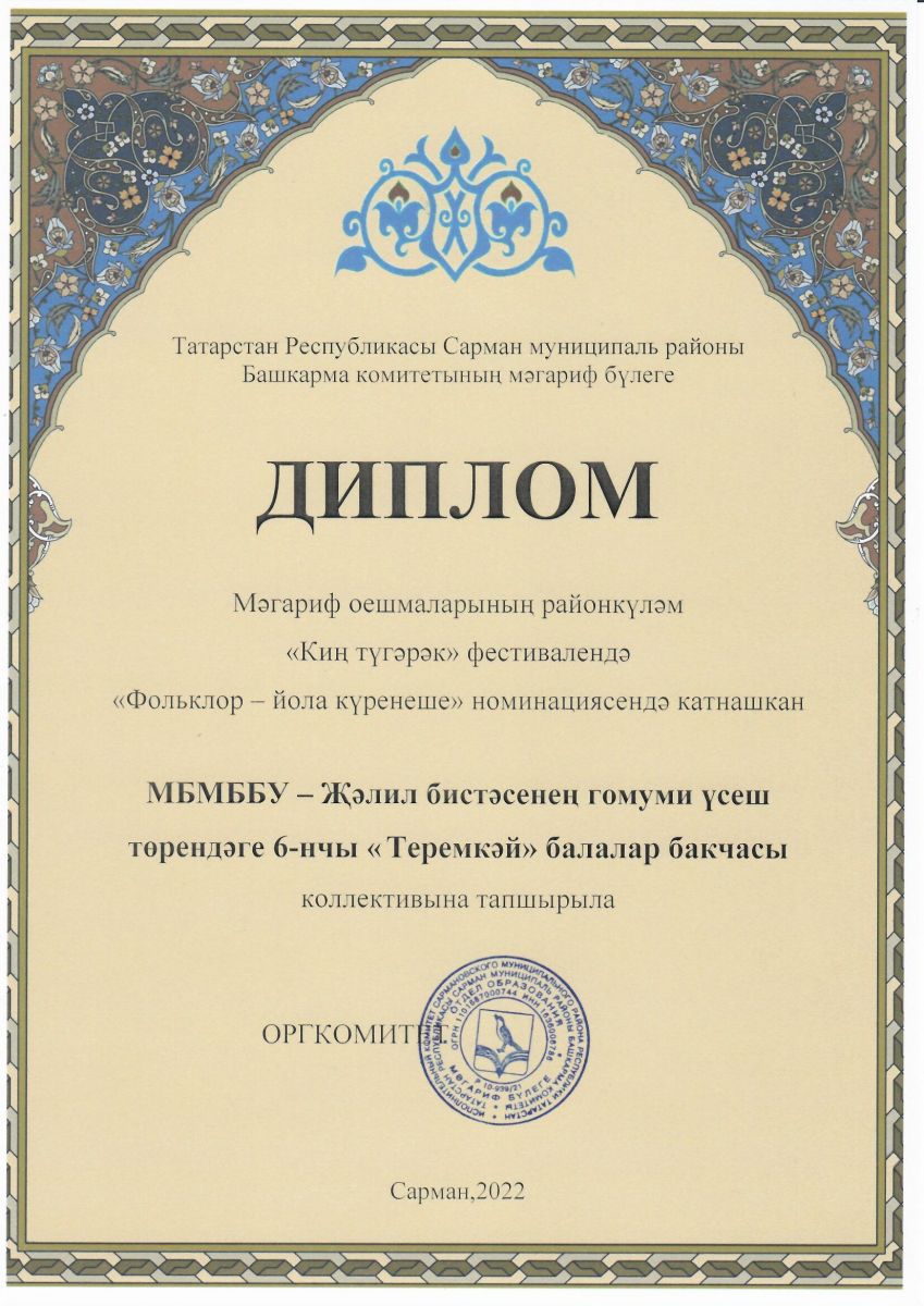 Муниципальное бюджетное дошкольное образовательное учреждение-Джалильский детский сад №6 "Теремок" общеразвивающего вида Сармановского муниципального района Республики Татарстан/Сарман муниципаль районы муниципаль бюджет мәктәпкәчә белем бирү учреждениесе - Җэлил бистәсенең гомуми үсеш төрендәге 6-нчы "Теремкәй" балалар бакчасы