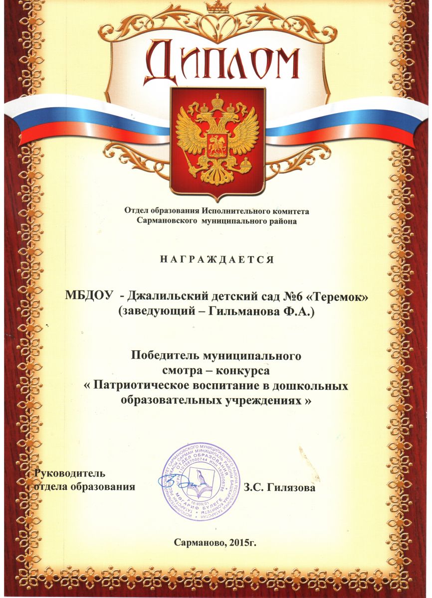Победитель смотр-конкурса "Патриотическое воспитание в ДОУ" 2015