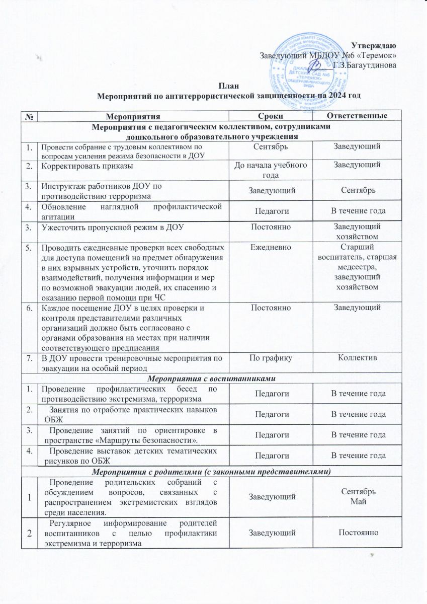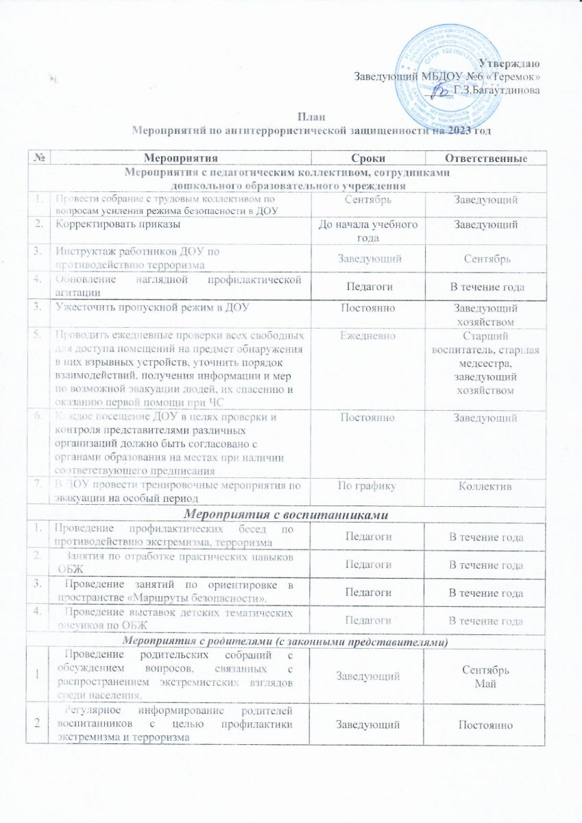 План мероприятий по антитеррористической защищенности на 2023 год.