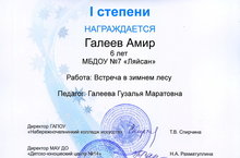 Воспитанник подготовительной к школе группы награжден дипломом победителя Регионального конкурса рисунков "Зимы волшебные узоры"