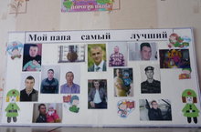 Фотостенд "Мой папа самый лучший" в средней группе / Уртанчылар төркемендә "Минем әти иң яхшысы" дип исемләнгән фотостенд.