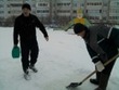 Наши папы молодцы,лепят горку от души