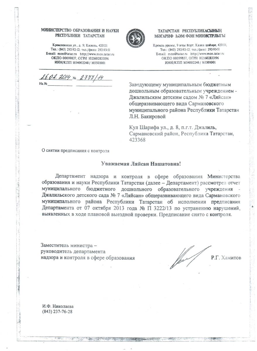 Муниципальное бюджетное дошкольное образовательное учреждение - Джалильский детский сад №7 "Ляйсан" общеразвивающего вида Сармановского муниципального района Республики Татарстан / Татарстан Республикасы, Сарман муниципаль районы мәктәпкәчә белем бирү муниципаль бюджет учреждениесе - Җәлил гомуми үсеш төрендәге 7 - нче "Ләйсән" балалар бакчасы