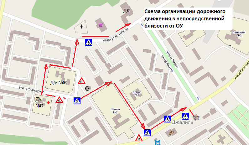 Схема организации дорожного движения в непосредственной близости от МБДОУ №7 "Ляйсан"