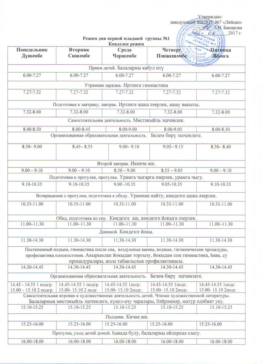 Режим дня на холодный период 1 младшей группы на 17-18 уч.год