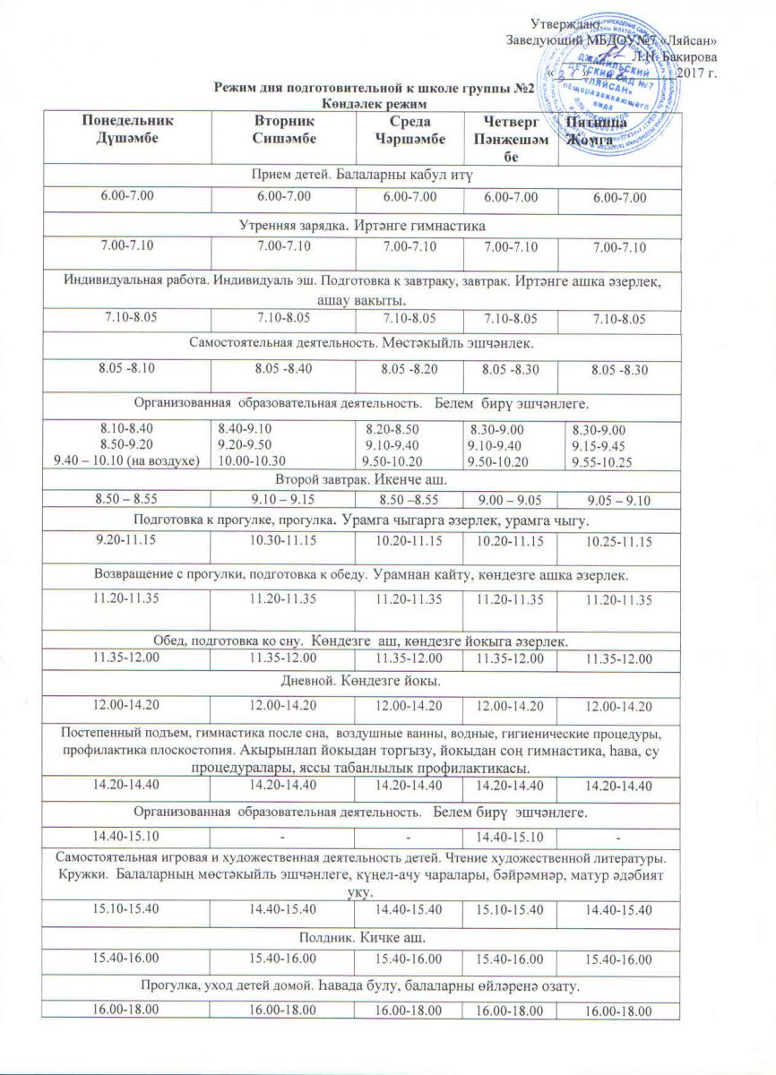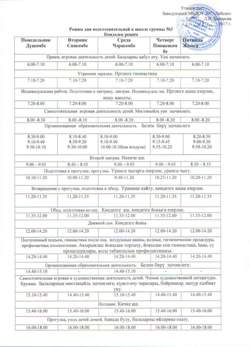 Режим дня на холодный период подготовительной группы(2) 17 - 18 уч.год