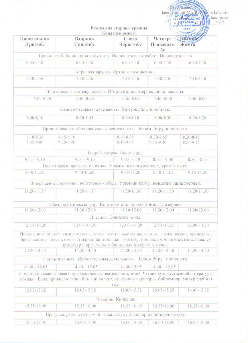 Режим дня на холодный период старшей группы 17-18 уч.год