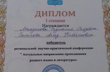 Учителя Сармановской гимназии Салихова А.Н. и Матзянова Р.Г. участвовали в конференции, которая состоялась в городе Менделеевске и заняли 1 место./ Сарман гимназиясе укытучылары Менделеевск шәһәрендә оештырылган чарада катнашып, 1 нче дәрәҗә диплом белән бүләкләнделәр.
