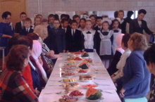 Учителей-ветеранов с Международным днём пожилого человека поздравили гимназисты 5а класса. Под руководством классного руководителя Гильфановой Г.М. и учителя музыки Мухаметдиновой Г.Р. они подготовили песни, стихи и выступили очень хорошо.