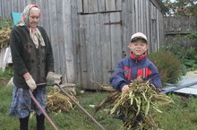 Ученики 8А класса часто посещают своего подшефного ветерана тыла – Хасанову Азию апа. Они и в этот раз охотно помогали в саду