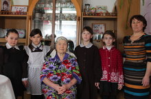 Янурыс башлангыч белем бирү укучылары, һәлак булган сугыш ветераны Әхкәмов Әкмәл абыйның хатыны, Әнүзә апа белэн очрашуда!