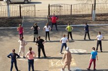 В рамках акции " Весенняя неделя добра", сегодня учениками была поведена утренняя "Добрая зарядка"/ "Язгы мәрхәмәтлелек атнасы" акциясе кысаларында бъген укучылар тарафыннан "Игелекле зарядка" уздырылды.