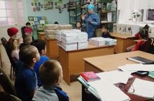 1 в сыйныф укучылары мәктәп китапханәсенә бардылар. Римма Ясировна балаларга китапханәнең барлыкка килү тарихы турында бик кызыклы итеп сөйләде, китаплар белән таныштырды. Укучылар дәреслекләр белән пөхтә итеп мөрәҗәгать итәргә, күп укырга һәм китапханәгә йөрергә вәгъдә бирделәр./Ученики 1 в класса посетили школьную библиотеку. Римма Ясировна очень интересно рассказала детям об истории создания библиотеки, ознакомила с книгами. Ученики обещали, что будут аккуратно обращаться с учебниками, много читать и посещать библиотеку.