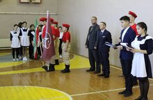 Бүген Сарман гимназиясендә 5-9 сыйныф укучыларын "Юнармия"Бөтенроссия хәрби-патриотик хәрәкәте сафларына тантаналы кабул итү чарасы булды .Әлеге чарада Сарман һәм Мөслим районнары хәрби комиссариатының бүлек начальнигы урынбасары Миңнеголов Камил Нәҗип улы катнашты /Сегодня в Сармановской гимназии состоялся торжественный прием учащихся 5-9 классов в ряды Всероссийского военно-патриотического движения "Юнармия". В мероприятии принял участие заместитель начальника отдела военного комиссариата Сармановского и Муслюмовского районов Миннегулов Камиль Назипович.