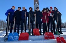 Юнармейцы 9 класса очистили Мемориал Великой Отечественной войны в центральном парке от снега.