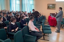 Сегодня гимназию, с целью проведения профориентации среди учащихся 9-11 классов, посетили представители Елабужского института КФУ доктор педагогических наук, профессор Ахметов Линар Гимазетдинович и кандидат наук, доцент Даутов Гумар Фильгизович. В ходе визита они также ознакомились со школьным музеем и работой центра "Точка роста"./Бүген гимназиягә, 9-11 сыйныф укучылары арасында һөнәри юнәлеш бирү максатыннан, КФУның Алабуга институты вәкилләре, педагогика фәннәре докторы, профессор Әхмәтов Линар Гыймазетдин улы һәм фәннәр кандидаты, доцент Даутов Гомәр Фильгиз улы килделәр. Визит барышында алар шулай ук мәктәп музее һәм "үсеш ноктасы" Үзәге эше белән таныштылар"