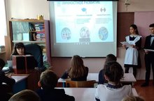 Сегодня состоялась встреча с представителями Казанской государственной академии ветеринарной медицины имени Н.Баумана. Обучающиеся 10-11 классов просмотрели видеосюжет об академии. Гости ответили на вопросы гимназистов./ Бүген Н.Бауман исемендәге Казан дәүләт ветеринария медицинасы вәкилләре белән очрашу булды. Очрашуда 10-11 сыйныф укучылары катнашты. Алар академия турында видеосюжет карадылар, үзләрен кызыксындырган сорауларга җаваплар алдылар