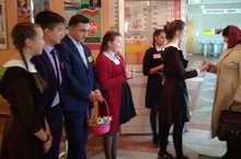 Сегодня с самого утра ученики нашей гимназии поздравляют своих учителей с их профессиональным праздником!\ Бүген иртәннән үк безнең гимназия укучылары үз укытучыларын һөнәри бәйрәмнәре белән котлыйлар!