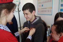 Юнармейцы гимназии участвовали во Всероссийской акции «Георгиевская ленточка»/Гимназиянең юнармиячеләре җиңү бәйрәме уңаеннан оештырылган акцияне башлап җибәрделәр.