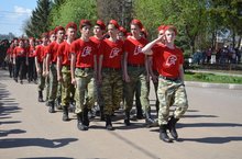 Сарман гимназиясе укучылары Җиңү бәйрәмен үткәрүдә үзләреннән өлеш керттеләр/Ученики Сармановской гимназии приняли участие в параде, посвященной 9 Мая.