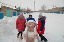 Илексаз мәктәбе укучылары кардан ясалган фигураларны буядылар