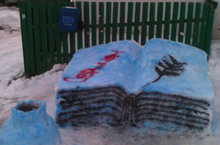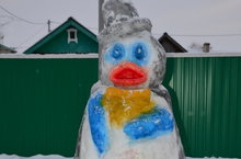 Бүген урамда укучылар белән кардан фигуралар ясадык