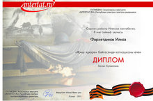 Intertat.ru редакциясе Бөек Җиңүнең 70 еллыгы уңаеннан укучылар арасында “Җиңү ядкәре” исемле бәйге уздырган иде. Ул укучыларда зур кызыксыну уятты. Шушы үткән бер-ике ай эчендә Татарстанның төрле районнарыннан йөздән артык иҗади эш кабул ителгән. Шулар арасында Илексаз мәктәбенең 8 нче класс укучысы Фәрхетдинов Илназның да эше бар. Ул авылыбызның бердәнбер сугыш ветераны Әхмәтҗәнов Шәрифҗан ага һәм аның сугыш истәлекләре турында укучыларга үзенең язмасын тәкъдим иткән иде. Аның эше Intertat.ru сайтында урын алды һәм ул Диплом белән бүләкләнде (Укытучысы- Хәлиуллина Гөләндәм Гөлүс кызы).