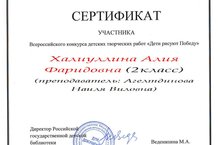 Җиңүнең 70 еллыгы уңаеннан россиякүләм "Балалар Җиңүне төшерә" ("Дети рисуют Победу") рәсем конкурсында уңышлы катнашып, мәктәбебезнең 4 укучысы сертификатлар, ә аларны әзерләгән укучылар Рәхмәт хатлары белән бүләкләнделәр: 3 класстан Хәлиуллина Гүзәл, 8 класстан Мифтахова Рүзилә (укытучылары Хәлиуллина Гөләндәм Гөлүс кызы), 2 класстан Нәбиуллина Гүзәл (укытучысы Нәбиуллина Гөлфирә Минемөхәммәт кызы), Хәлиуллина Алия (укытучысы Әһелтдинова Наилә Вил кызы).
