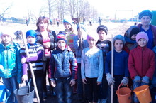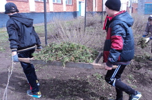 Районда башланган санитар икеайлык планы буенча эш"не дәвам итеп, мәктәп тирәләрен чистартык.