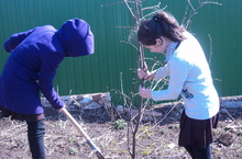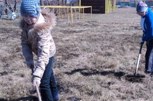 Бакчадагы язгы эшләр башланды. Укучылар кишер, суган утырттылар