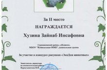 Хузина Зәйнәб Инсаф кызы "Эко дни животных" бәйгесендә 2 урын алды.