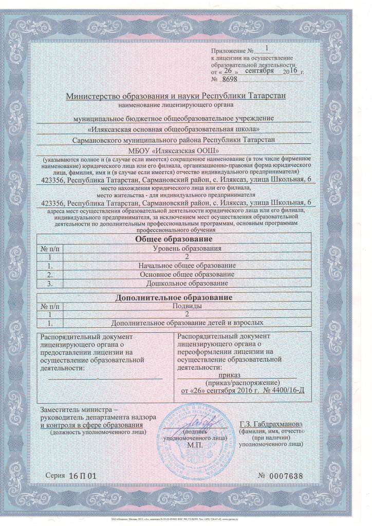 Адрес: 423359, Республика Татарстан, Сармановский район, с. Иляксаз, ул. Школьная, д. 6 / 423356 Сарман районы Илексаз авылы Мәктәп урамы 6 нчы йорт
