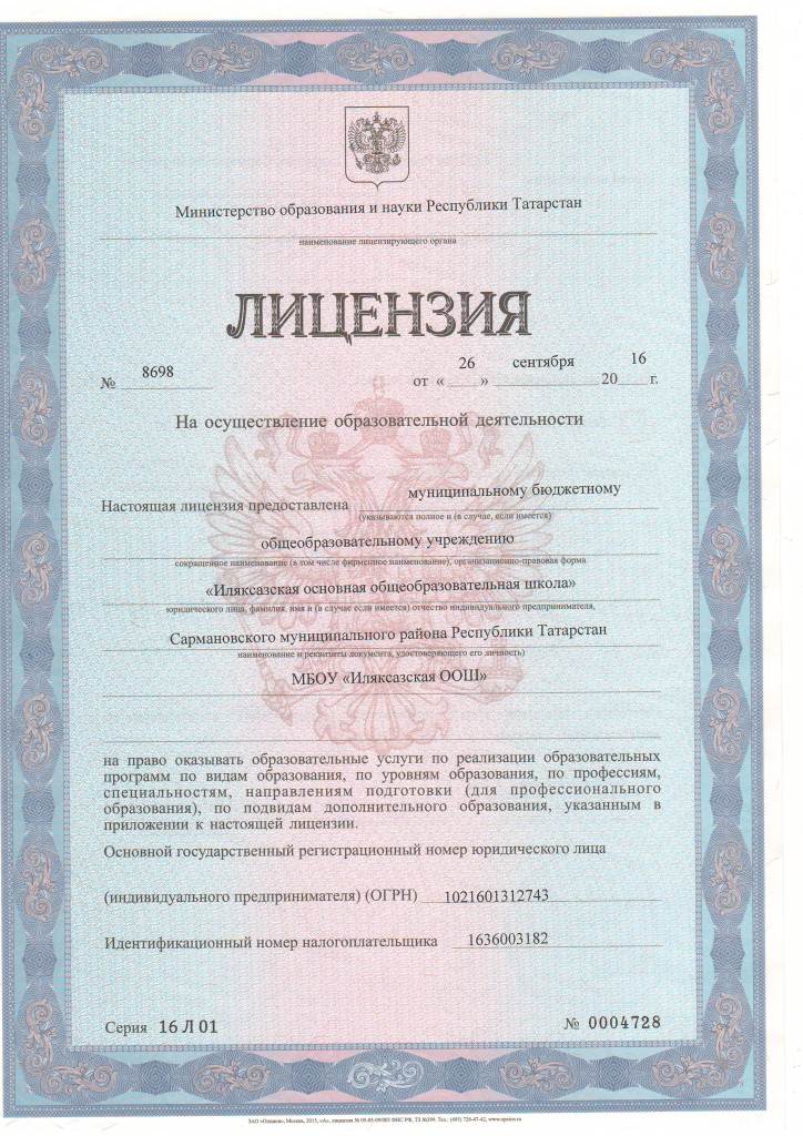 Муниципальное бюджетное общеобразовательное учреждение «Иляксазская основная общеобразовательная школа» Сармановского муниципального района Республики Татарстан