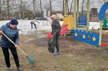 Уборка территории детского сада от снега и мусора./Балалар бакчасы территориясен кар ,чүптән чистарту. 15.04.2022